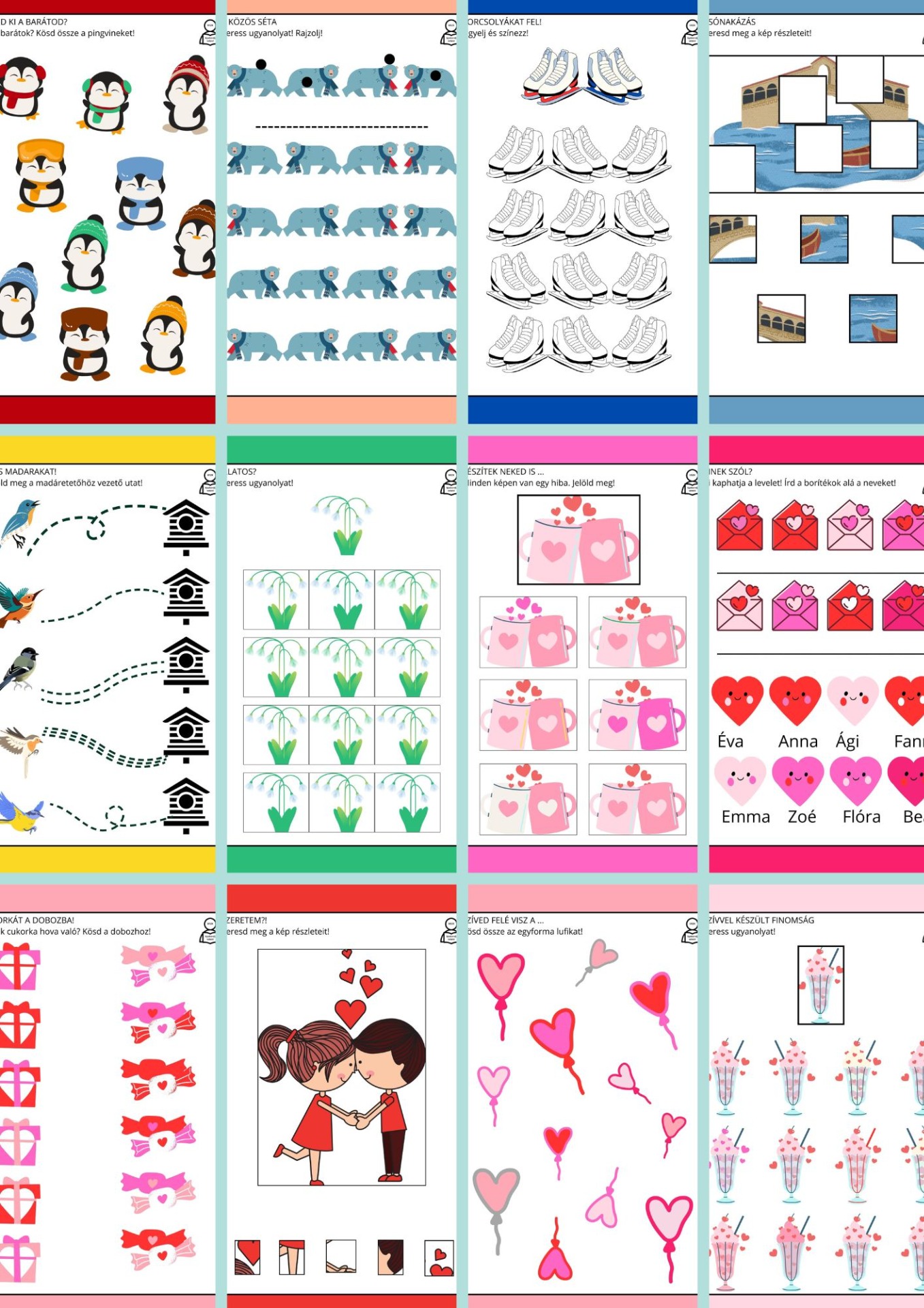 A feladatlapok saját ötletek alapján, online, ingyenesen használható grafikai tervezőeszköz sablonjainak segítségével készültek.